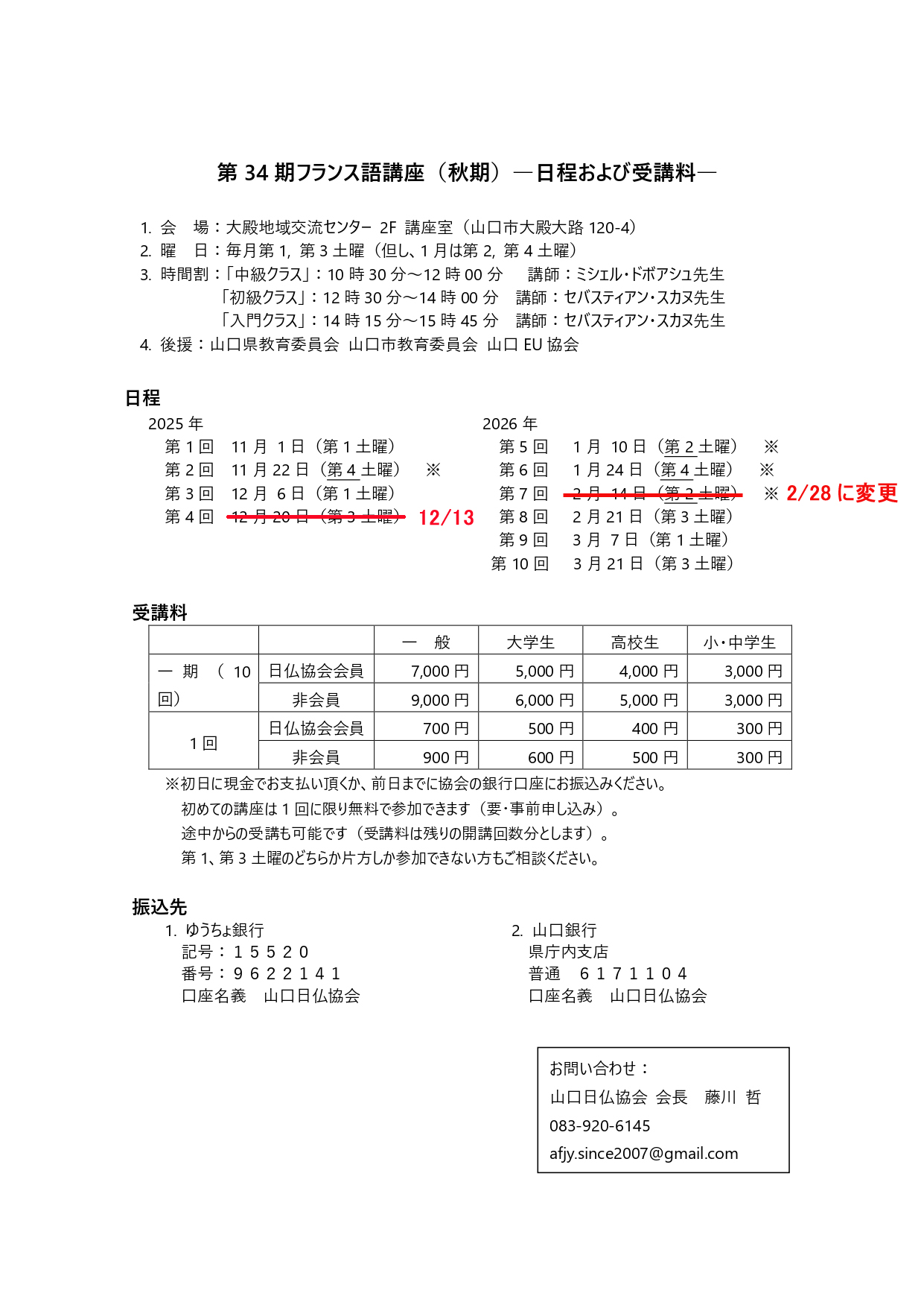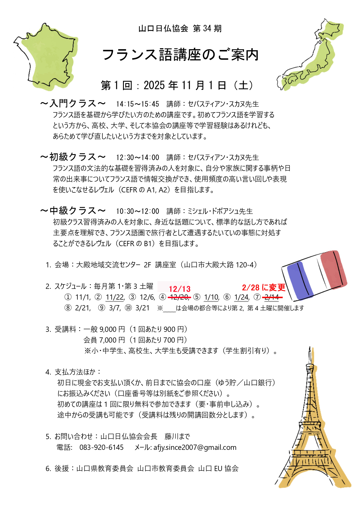 山口日仏協会 第34期フランス語講座のご案内(再変更)