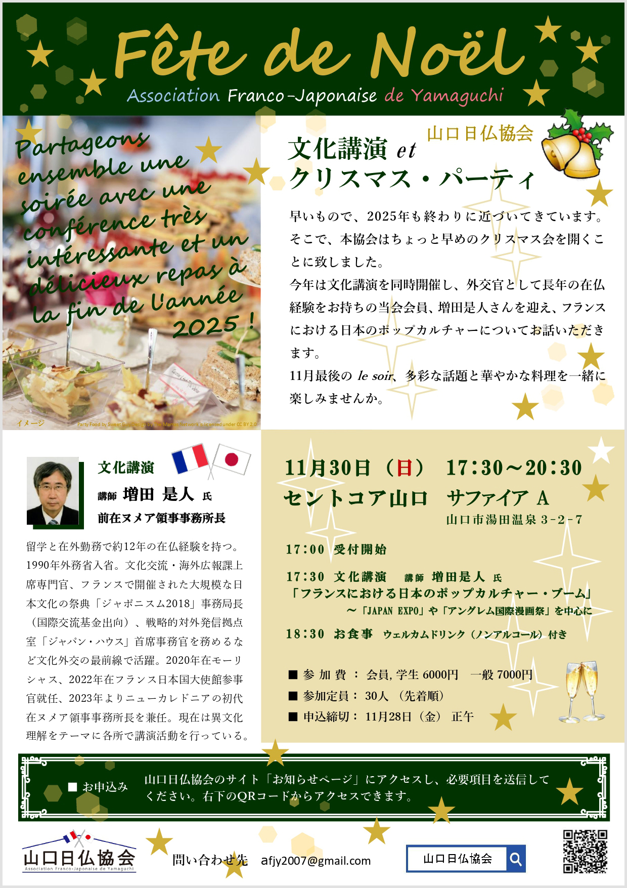 - 件名:山口日仏協会 文化講演会&クリスマス・パーティー参加申し込み
